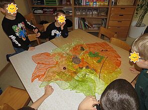 Anschließend setzen die Kinder die Tiere in ihr neues Zuhause.
