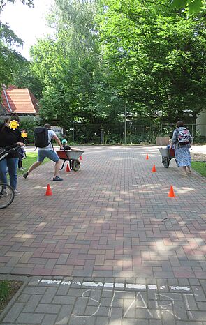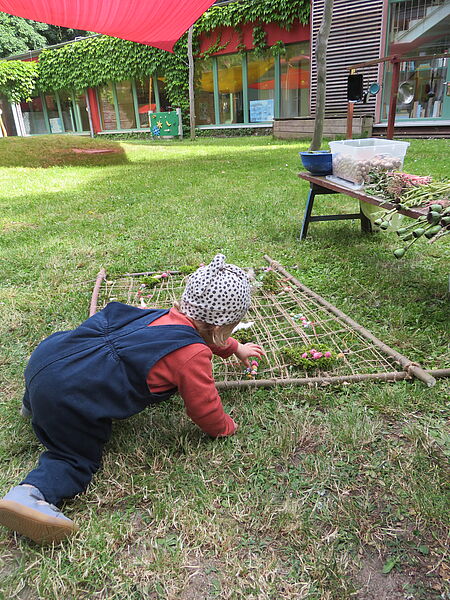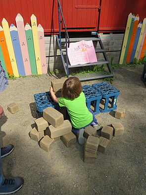 Ein Beispiel hierfür ist, dass sich die Kinder mehr Getränkekisten im Garten zum Bauen wünschen. So werden nach und nach die Getränkekisten in den Holzbaustellen der Gärten verteilt.